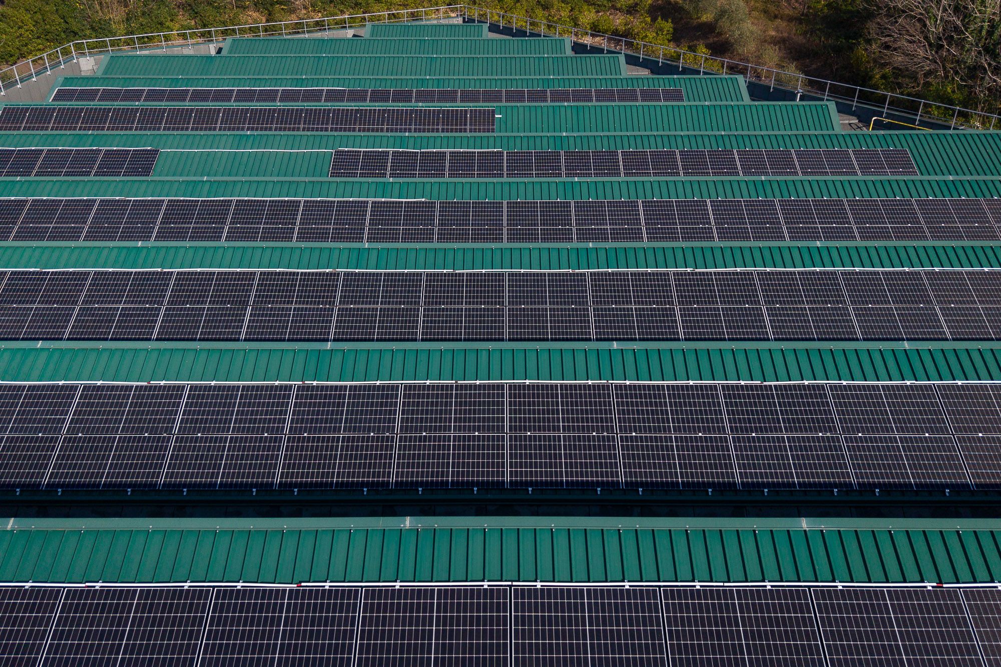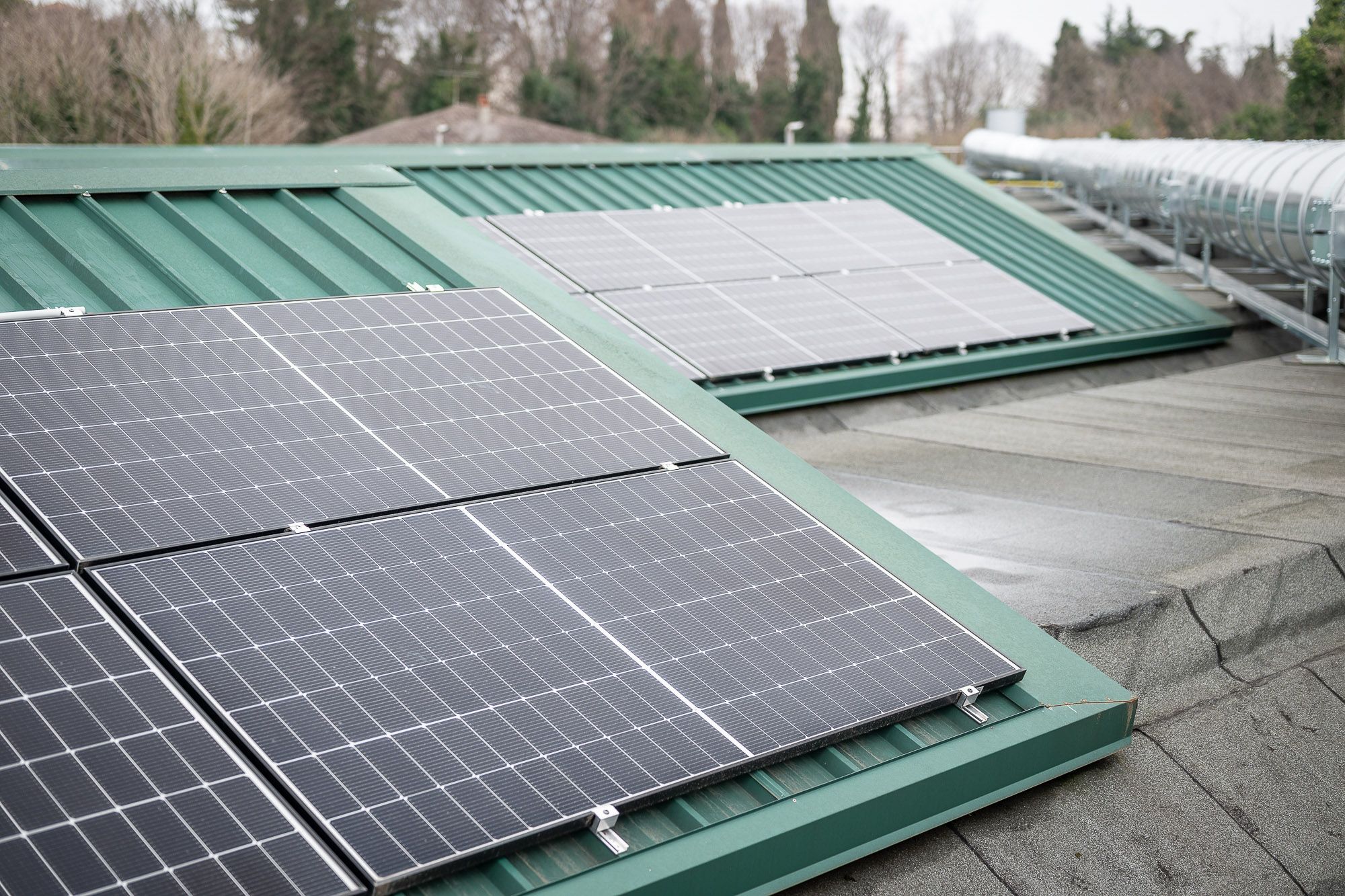 La struttura di supporto su lamiera grecata è realizzata con profili dotati di EPDM integrato, morsetti in alluminio e fissaggi a rivetto, garantendo stabilità, protezione e durata nel tempo.