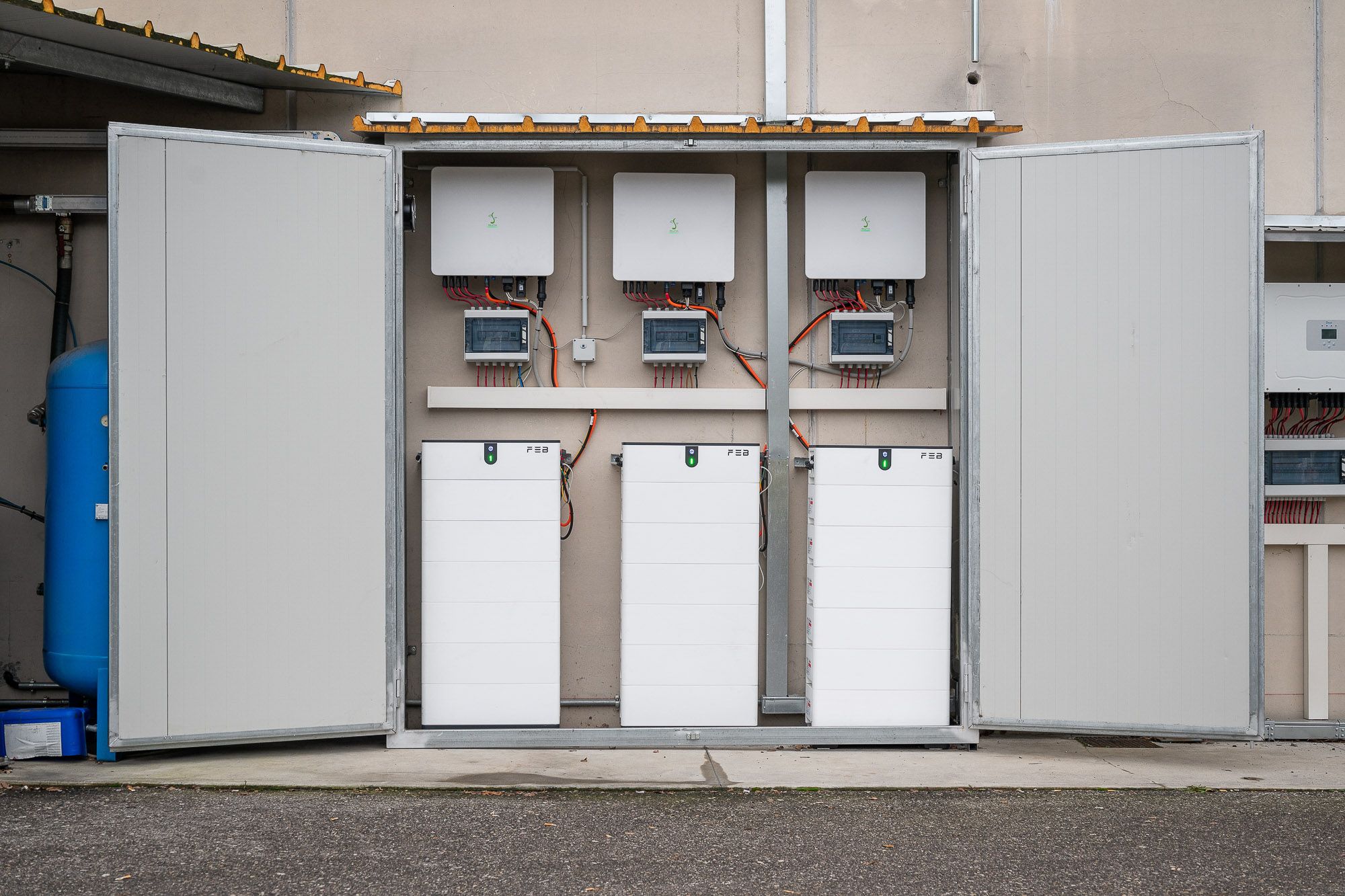 L’accumulo è assicurato da 18 batterie FEB da 5,12 kW e 3 BMS, per un controllo intelligente e sicuro della produzione e dello stoccaggio.